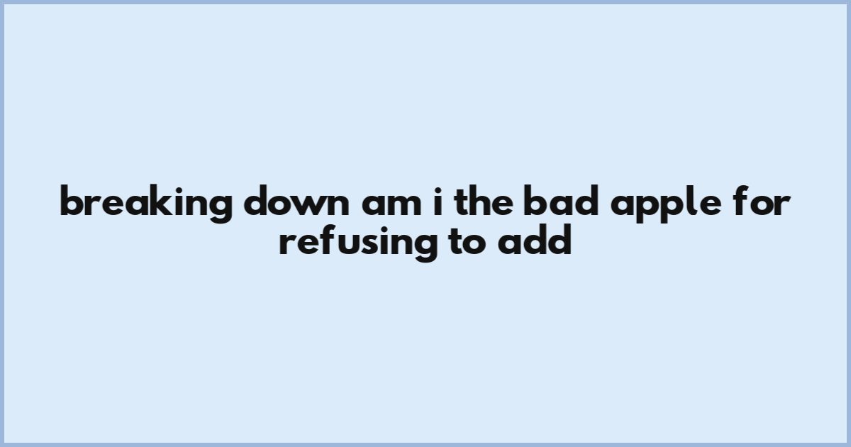 Breaking Down Am I The Bad Apple For Refusing To Add