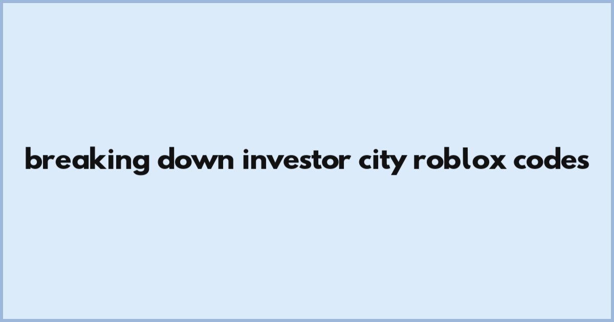 Breaking Down Investor City Roblox Codes