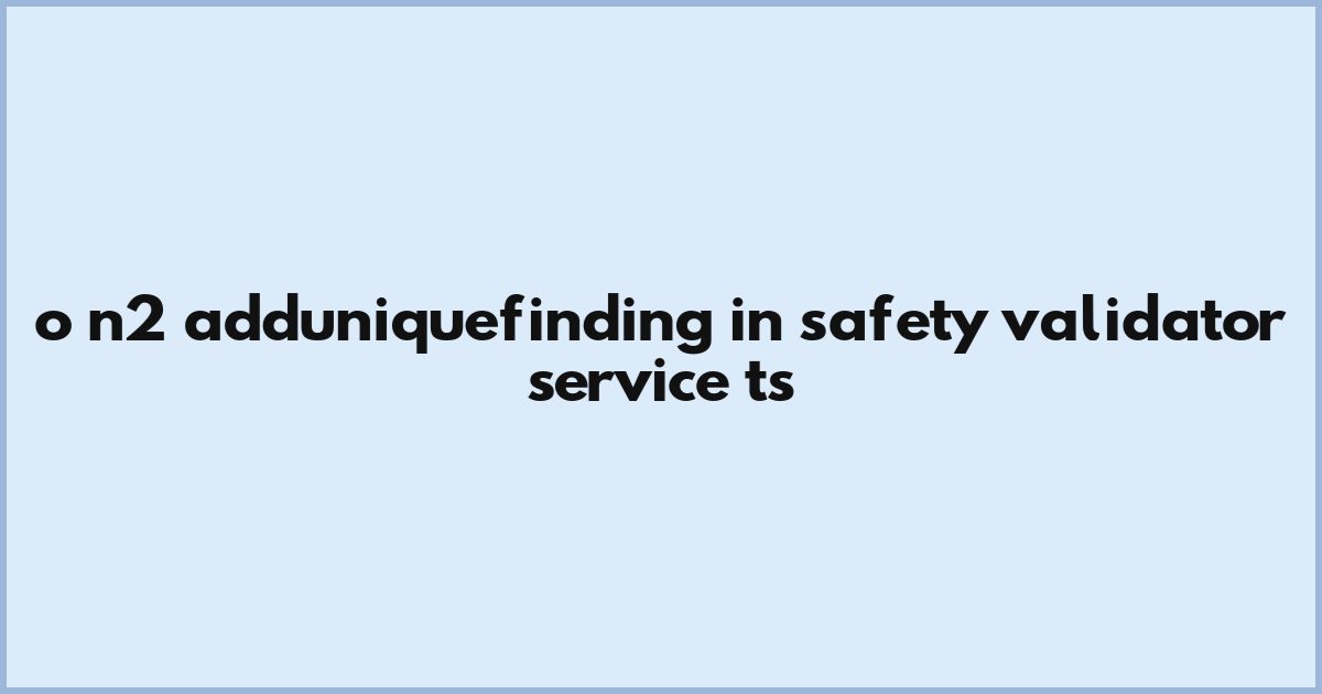 Every time a new finding is added in line 347 of safety-validator.service.ts, the helper runs a full linear scan through the existing array - causing a brutal O(n²) hit when adding n findings. This slowdown isn’t just slow - it’s a bottleneck in real-time safety checks. Think of it like checking every email twice to avoid sending duplicates: inefficient and risky under pressure. The current logic scans the array each time, re-checking every entry. This creates unnecessary strain, especially when hundreds of safety findings pile up.